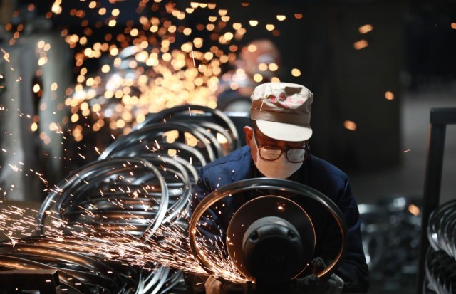 2月11日,正在浙江省杭州市临安区天目山镇一家外贸企业,工人正在对预备销往海外的自行车钢圈进行抛光功课。发(胡剑欢 摄)?。