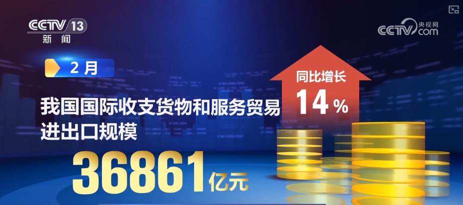 国度外汇办理局最新数据显示,2月,我国国际出入货色和办事商业进出口规模36861亿元,同比增加14%。2025年前两个月,国际出入货色和办事商业累计顺差8170亿元,创汗青同期最好程度,我国外贸实现优良开局。东方金诚首席宏不雅阐发师王青引见,培育外贸合作新劣势,使得我国出口商品的品类、质量不竭优化升级,出口国度和地域继续拓展,这都将持续为我国货色商业出口连结较高规模顺差奠基根本。此外,一系列便当化入境、领取等政策逐步拓展,也持续带动来华旅行添加。我国正在贸易办事、电信、这些都将持续为我国外贸成长带来强劲动力。